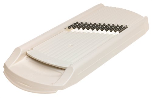 Adjustable insert provides 3 different thicknesses for slicing.Creates attractive waffle or wave-cut vegetables for salads, garnish, or frying.Safety holder sold separately; dishwasher-safe.Sturdy plastic body with surgical stainless-steel blade.Will not absorb odors; manufactured in Germany..Borner Adjustable Wave/Waffle Slicer Features.